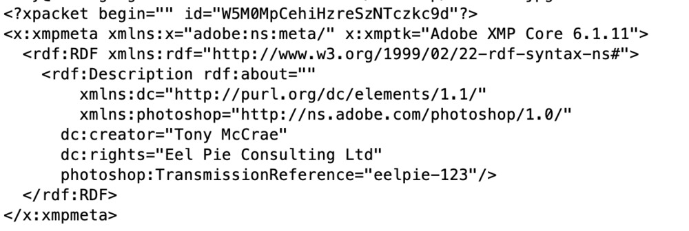 Crop files contain an XMP metadata block with the IPTC Copyright Notice, Creator and Credit Line metadata fields referenced by Google Images.