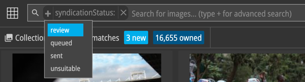 To select suitable images to send for syndication select the review syndication status: